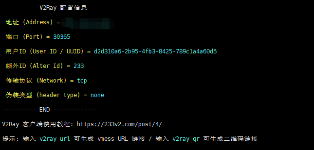 v2ray info //查看 V2Ray 配置信息