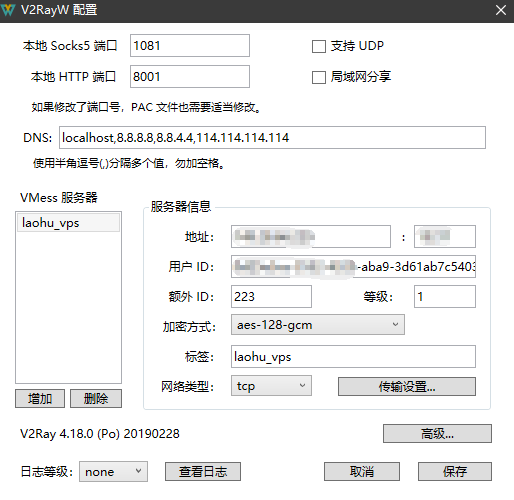 ####V2Ray客户端配置