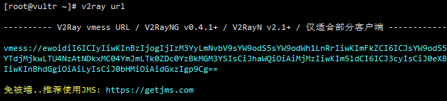 1. VPS控制台输入v2ray url 生成vemss URL,copy到内存