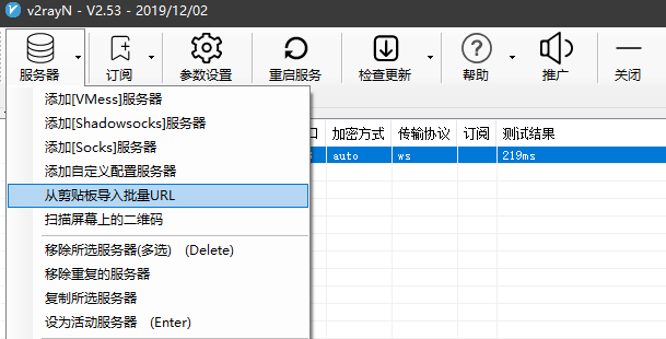 2. 打开V2RayN客户端,点击左上角服务器——>从剪贴板导入URL